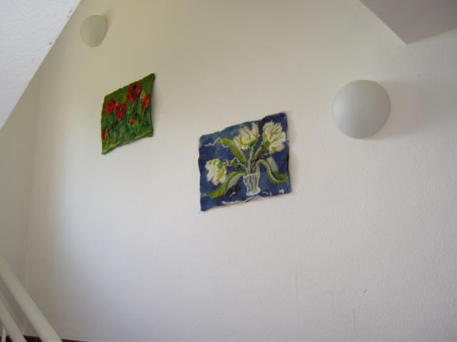 einige beispielhafte Filzarbeiten und Stiche als Leihgabe